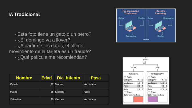 Por ejemplo, había un chatbot que se llamaba Elisa en su momento que estaba basado en reglas, que estaba programado de forma tradicional diciendo reglas. Si si te dice esto, contestale esto otro, si te dice esto otro contestale. Eso en dentro del mundillo es inteligencia artificial, aunque no se haya utilizado datos para entrenarlo.
